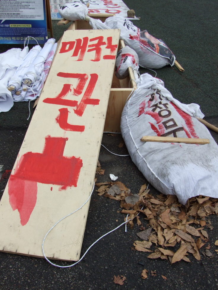 | 황 박사 지지자들이 만든 인형, 이장무 총장과 정명희 전 서울대조사위원장의 이름이 적혀있다. |