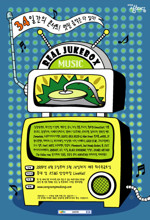 일시 :4/5~5/14 매주 화~일 장소 : 홍대 앞 상상마당 Live Hall 가격 : 자유이용권 50,000원(공연 별 단독판매는 당일 현장에서) 문의 : 상상마당 홈페이지www.sangsangmadang.com 또는 상상마당 Live Hall(02-330-6212) 홍대 상상마당의 야심작 ‘Real Jukebox 리얼주크박스 릴레이콘서트(릴레이콘서트)’는 라이브 밴드음악의 진수를 보여줄 예정이다. 밴드 ‘장기하와 얼굴들’만 떠올려봐도 인디음악은 확실히 대중가요와는 달리 자유분방하고 개성이 넘치는 음악이다. mp3의 죽은 음악에만 빠져있다면, 콘서트에서 직접 라이브공연을 본 경험이 없다면, 매력만점 진짜 밴드 공연을 저렴하게 라이브로 들어볼 수 있는 릴레이콘서트를 추천한다. ‘Real Jukebox – 멋진 음악은 다 있다!’라는 모토를 걸고 시작된 릴레이콘서트는 상상마당 라이브홀에서 진행된다. 오는 5일부터 5월 14일까지 장장 34일 동안 총 50여 밴드가 참여한다. 록, 재즈, 클래식, 포크 등 장르를 초월한 다양한 밴드들이 매일매일 다른 형식으로 무대를 꾸민다. ‘김창완 밴드’, ‘백두산’ 등 관록의 밴드부터 ‘장기하와 얼굴들’, ‘소규모 아카시아밴드’ 등 젊고 알찬 밴드의 공연까지 다양하게 입맛대로 준비돼 있다. 이번 공연을 통해 관객들은 밴드 음악이 들려주는 살아있는 음악을 밴드와 호흡하며 느낄 수 있을 것이다. 올 봄엔 기타를 들고 우주를 지키는 대한민국의 슈퍼 뮤지션들이 초대하는 34일간의 음악 천국으로 가보는 것은 어떨까. 2. 두레문예관 5/18~5/19 인문대 불문이반 환상극단 ‘떼아트르 빵따스띠끄’ 봄 워크샵공연 , 늦은 4시5/22 수의대 락밴드 ‘ZEBRA’ 봄 정기공연, 늦은 7시5/27~5/29 경영극회 2009경영극회워크샵공연, 늦은 4시, 7시6/4 에르떼수스 ‘러시아 음악의 밤’, 늦은 6시Preview환상극단 ‘떼아트르 빵따스띠끄’ 봄 워크샵공연 -5/18~5/19 늦은 4시, 두레문예관 불문이반의 연극학회 ‘떼아트르 빵따스띠끄(떼빵)’는 연극에 관심 있는 불문이반과 불어불문학과 소속 학우들이 함께하고 있는 모임이다. 떼빵은 희곡 강독 세미나, 연극 연습을 통해 정기적으로 공연을 하고 있다. 또한 떼빵은 인문대에서 매해 개최되는 외국어 연극제에 불어불문학과 소속 참가자로서 적극적으로 참여하고 지원하기도 한다. 떼빵이 이번 5월 18, 19일에 정기공연 을 무대에 올린다. 사람은 자신의 허영에 양보할 때마다 남에게 보이기 위해 살게 된다. 그러한 배반으로 인해 자신의 존재는 진실 앞에서 점점 작아진다. 남들에게 자신을 털어놓을 필요는 없다. 그저 사랑하는 사람들에게만 그러면 되는 것이다. 궁극까지 간다는 것은 자신의 비밀을 간직할 줄 안다는 것이다. 하지만 우리는 과연 자신의 비밀을, 죽을 것 같은 권태와 누군가를 사랑하는 마음을, 언제까지 감출 수 있을까? 의 큰 주제는 사랑이다. 희곡에는 역시 로맨스가 있어야 하지 않을까? 그리고 그 로맨스의 주인공들이 연극을 한다면? 배우가 자신이 연기한다는 걸 모른 채 연기한다면 그의 눈물은 그냥 우리가 일상에서 흘리는 눈물이 되고 무대 위에서 삶은 그저 하나의 삶이 될 것이다. 하지만 배우들이 지금 연기하고 있다는 사실을 잊지 않는다면 어떻게 될까? 우리는 자신이 원하는 대로 우리 스스로를 제어할 수 있을까? 우리는 모두 나약하고 쿨하지 못하지만 과연 그 사실을 스스로 받아들일 수 있을까? 마비돼 말을 듣지 않는 작가의 손가락처럼 우리는 우리의 손에서 벗어난 상황, 우리가 원하는대로 일어나지 않는 현실에 대해서 보게 된다. 극(劇)에 대해 이야기하는 한 편의 극. ‘가사 없는 노래’를 뜻하는 라는 제목처럼, 이 연극에서 모든 등장인물들과 사건들, 대사들은 사실 텅 비어있다. 이 극의 주인공은 한 젊은 극작가이다. 그의 짝사랑이 사랑하는 여배우를 죽이고, 그 기억은 다시 늙어버린 극작가를 죽인다. 그러나 사랑 이야기는 마치 연주되려다 끊임없이 방해받는 노래처럼 앙상하게 껍데기만 남아있다. 떼빵은 여러분에게 수많은 질문을 던져본다. 떼빵은 5월 정기공연뿐 아니라 외국어 연극제에도 프랑스어로 연극을 올릴 예정이다. 무대에 오르는 배우를 하고 싶거나 연극을 만들어나가는 스탭으로 참여하고 싶다면 언제든 연락하시길! 안도희(불어불문 07) 010-9196-85083. 문화관5/20 여성 댄스 동아리 ‘GoAheaD’ 제2회 봄 공연 ‘P.S. GoAheaD’, 늦은 6시5/22 제6회 서울대-부산대 합창단 합동연주회, 늦은 6시4/21, 4/28, 5/12, 5/19, 5/26 서울대생과 관악구 주민을 위한 화요음악회, 늦은 4시5/12~5/15 중앙동아리 서예회 인서전, 이른 11시~늦은 5시Preview여성댄스동아리 GoAheaD 제2회 봄공연 ‘P.S. GoAheaD’ – 5/20 늦은 6시, 문화관 대강당
