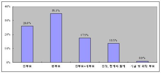 가출 청소년들의 출신 가정을 보여주는 도표. 편부모 가정 출신이 많다.