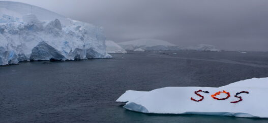 세계적인 환경운동단체 Global Green 회원들이 지구온난화의 심각성을 알리기 위해 빙하가 떠 다니는 북극 한복판에서 퍼포먼스를 벌이고 있다.