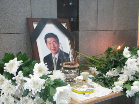 | 5월 24일, 중앙도서관 통로에 노무현 전 대통령을 추모하기 위한 분향소가 설치됐다. |