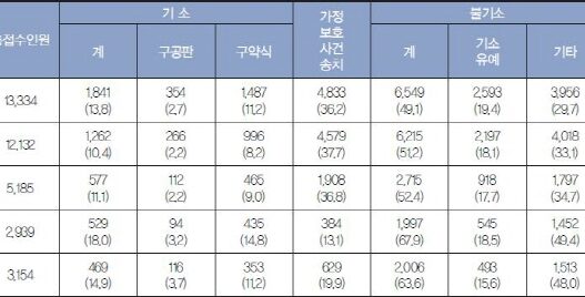 ▲<표1> 2011년부터 2013년까지 가정폭력범죄로 경찰에 접수된 사건(전국). 2013년 박근혜 정부가 가정폭력을 4대악으로 지정하면서 가정폭력에 대한 민감도가 높아졌다.