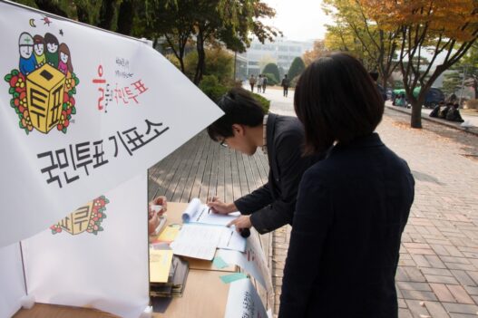 투표소는 광화문, 동대문, 홍대 등 서울시내 주요 장소에도 설치돼 있으며, 대학동에 위치한 서점 ‘그날이오면’에도 설치돼 있다. 누리집(votechange.kr)을 통해서도 투표에 참여할 수 있다.