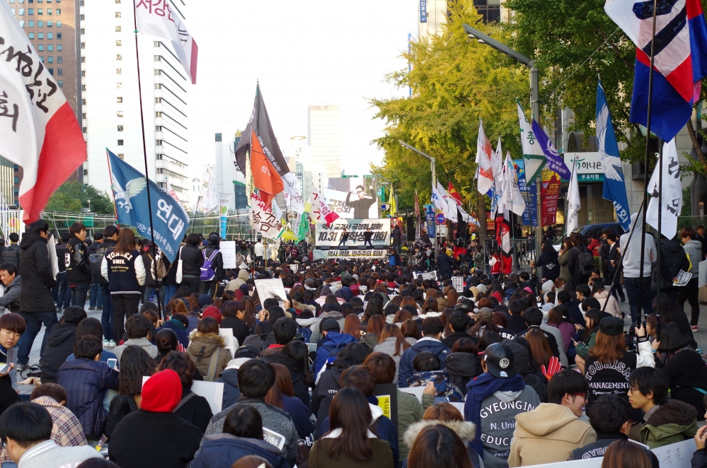 10월 31일, 한국사교과서 국정화 저지를 위한 ‘역사 교과서 국정화 철회 10·31 대학생 대회’가 열렸다. 이날 서울권역 30여개 대학과 단체에서 모인 1,000여 명의 대학생은 정부의 역사교과서 국정화를 규탄했다. 오후 2시에 동·북부, 서부, 남부 권역별로 서울 각지에모인 참가자들은 청계광장까지 행진했고, 4시부터는 청계광장에서 집회를 했다. 이날 집회에선 각 단위 대표를 비롯한 참가 학생들의 연설과 결의문 낭독이 있었고, 각종 단체의 영상 상영 및 노래와 춤 공연이 이어졌다. 참가자들은 파도타기를 하고 구호를 외치며 뜨거운 열기를 보여줬다.