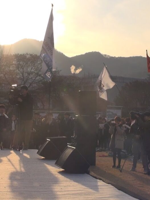 총학생회장의 여는 발언을 시작으로 골패 공연과 플래시몹이 이어졌다.
