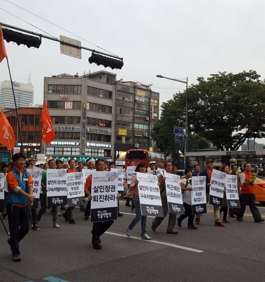 어 학교 식당에서 점심을 사먹어야 한다. 1년 전 용역업체가 바뀌고 나선 휴식시간도 줄어들었다. 청소 자체도 강도가 세다. “밀대질을 계속 하다 보니 손목, 팔, 무릎 다 아파요.” 이 씨는 세미나 등을 위해 원 모양으로 배치된 강의실 책상들을 제자리로 옮겨놓는 일이 제일 힘들다고도 털어놓았다. 고속터미널에서 하차하는 박주순 씨도 “한 사람 당 네 층을 청소하는데, 변기에 게워놓는 경우도 있고 해서 힘들 때가 있지”라고 말했다.