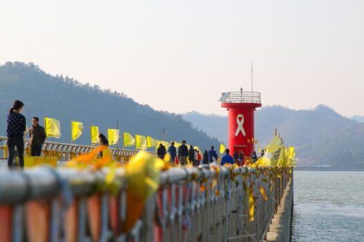 곧 인양이 진행될 것이라는 전망에 팽목은 분주했다. 앞바다에서는 인양준비가 진행되고 있었고 시민들도 여럿 눈에 띄었다. 세월호 인양 작업에 쓰일 재킹바지선과 반잠수식 운반선이 도착했고 세월호 밑에 설치된 33개의 리프팅 빔(선체 인양시 선체를 받치는 구조물)에 와이어 연결이 완료된 상태였다. 한편 시민들은 분향소를 찾고 ‘기억의 등대’로 이어진 길을 걸으며 각자 생각에 잠긴 듯 했다. 걸음걸음마다 마주친 노란 깃발과 현수막들에 3년이라는 오랜 시간은 빛바램을 새겨놨다.