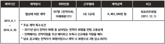 직영화는 현장직원들의 안전에 대해 회사가 책임감을 갖도록 해 2인 1조 출동 원칙 등 안전지침 준수를 강화하는 결과를 가져왔다. 이호영 실장은 “서울메트로라는 직장의 일원이 됐다는 데서 직원들이 자부심을 가져 고장사례에 더 잘 대처했고 실제로 고장률이 줄어들기도 했다”라고 덧붙였다. 그러나 직고용된 안전업무직 직원들의 고용형태는 정규직이 아닌 무기계약직이었다. 무기계약은 기간을 정하지 않고 근로계약을 체결하는 경우를 말한다.