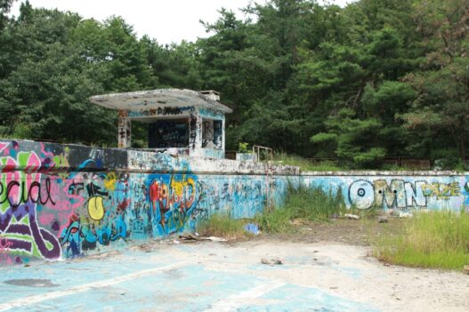 유전공학연구소(105동) 맞은편 관악산 등산로 중턱에 오랫동안 잊혀왔던 곳이 있다. 무성한 나무들 사이로 쓰러져 가는 건물이 보이는데, 한때 탈의실로 쓰이던 곳이다. 건물 뒤편의 계단을 올라가면 거대한 수영장이 움푹 파여 있다. 물이 차있었던 흔적이라고는 찾아보기 힘든 이곳. 지금은 버려져 손 닿는 곳곳 마다 녹이 슬어있고, 먼지와 쓰레기로 뒤섞여 있는 폐수영장이다.