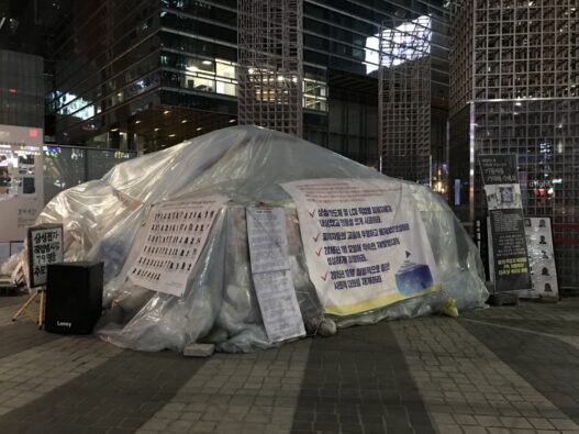 삼성사옥 앞에서 500일이 넘도록 자리를 지킨 반올림 농성장 ©한기웅 기자