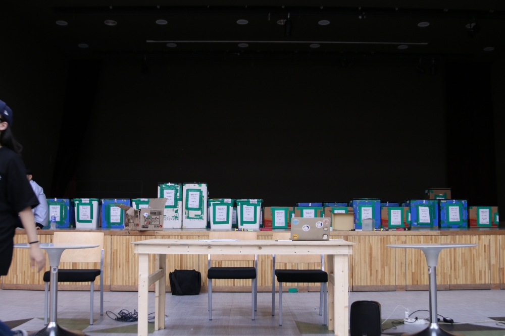 ▲개표장에 각 단과대학으로부터 온 투표함이 늘비하다. ©여동준 기자