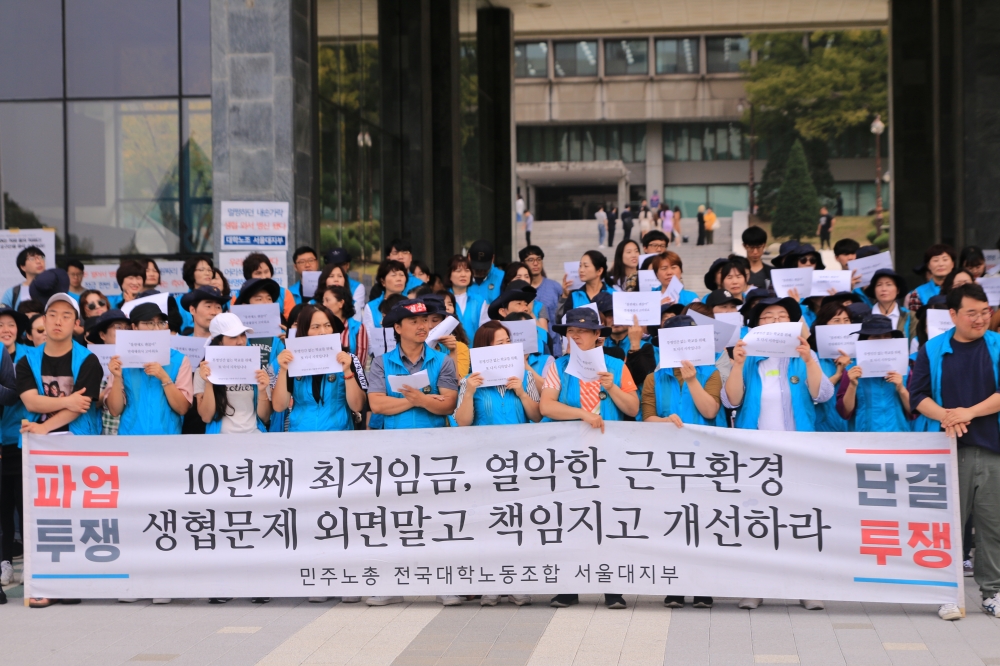 반면 일반노조에는 산업별 노조에 포함되기 어려운 노동자들이 주로 가입한다. 청소·경비·기계·전기 등의 시설 관리직 노동자가 대표적이다. 이들은 지난해 직접고용으로 전환되기 전까지 용역 업체를 통해 간접고용돼왔다. 때문에 직접고용 전까지 대학노조에 들기 어려웠고 대신 지역을 기반으로 한 서울일반노조에 가입하게 됐다. 일반노조는 직군의 특성을 고려하기 위해 다시 청소·경비 노동자를 위한 서울대 시설관리분회와 기계·전기 서울대 기계·전기분회로 나뉜다.