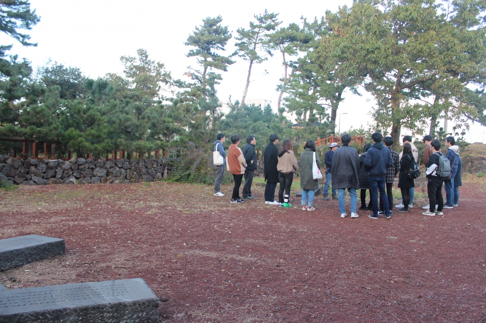 인가를 벗어나 도로를 따라 걸으면 적갈색을 띤 옴팡밭이 나타난다. 옴팡밭은 제주 방언으로 ‘오목하게 쏙 들어간 밭’을 말한다. 밭 한구석엔 현기영 작가의 소설 《순이 삼촌》의 구절이 새겨진 비석들이 누워있었다. 북촌대학살이 일어난 날, 사람들은 좁은 옴팡밭에 가둬져 무차별 총격으로 목숨을 잃었다. 당시의 참혹함을 묘사한 문장들을 지닌 여러 기의 비석들이 흐트러진 곳에서 한 무리의 여행객들이 해설사의 설명을 주의 깊게 듣고 있었다. 사람들은 사진을 찍거나 손을 모은 채 해설을 들으며 생각에 잠겨 있었다.