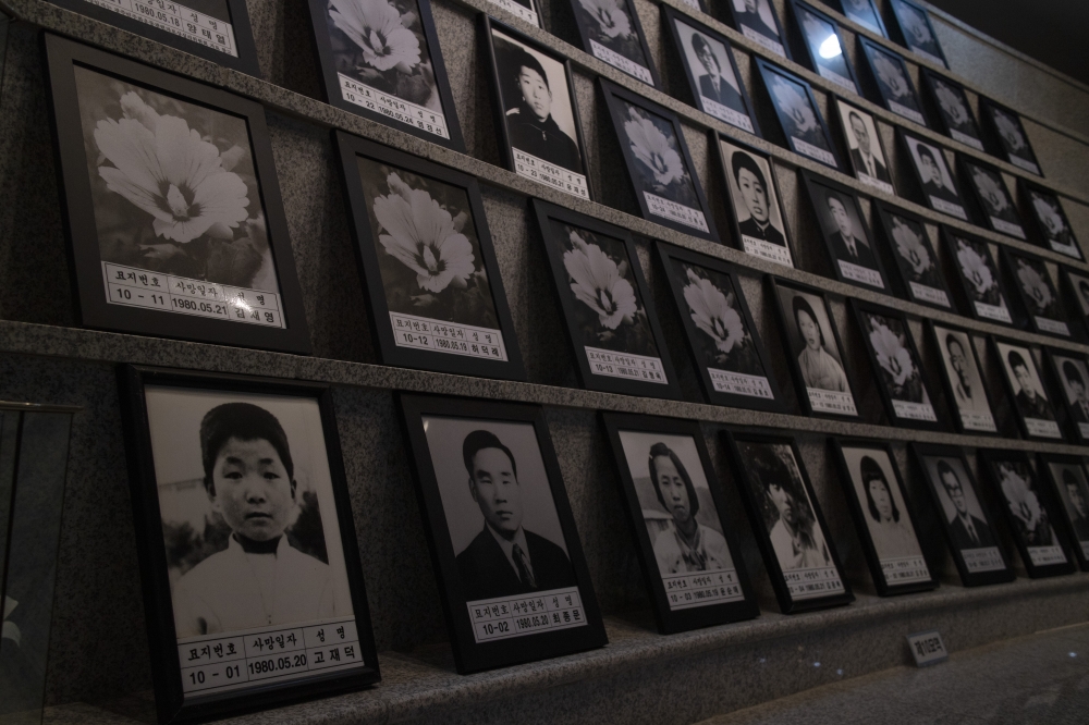 ▲국립 5·18 민주묘지 안에 있는 유영봉안소는 묘역에 안장된 희생자들의 영정을 모신 공간이다. 벽에 걸린 액자 속 얼굴들은 어린아이부터 학생, 노인에 이르기까지 다양하다.