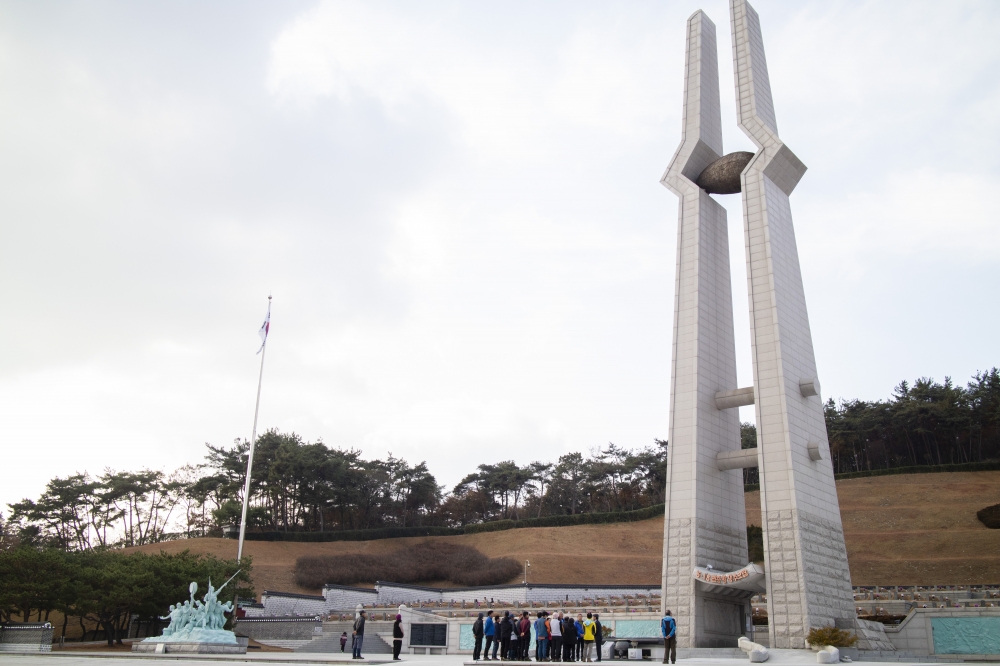 ▲5·18 희생자의 묘지는 광주광역시 북구 운정동에 마련돼있다. 중앙에 설치된 5·18민주화운동 추모탑은 희망의 씨앗을 감싼 손 모양을 형상화했다.