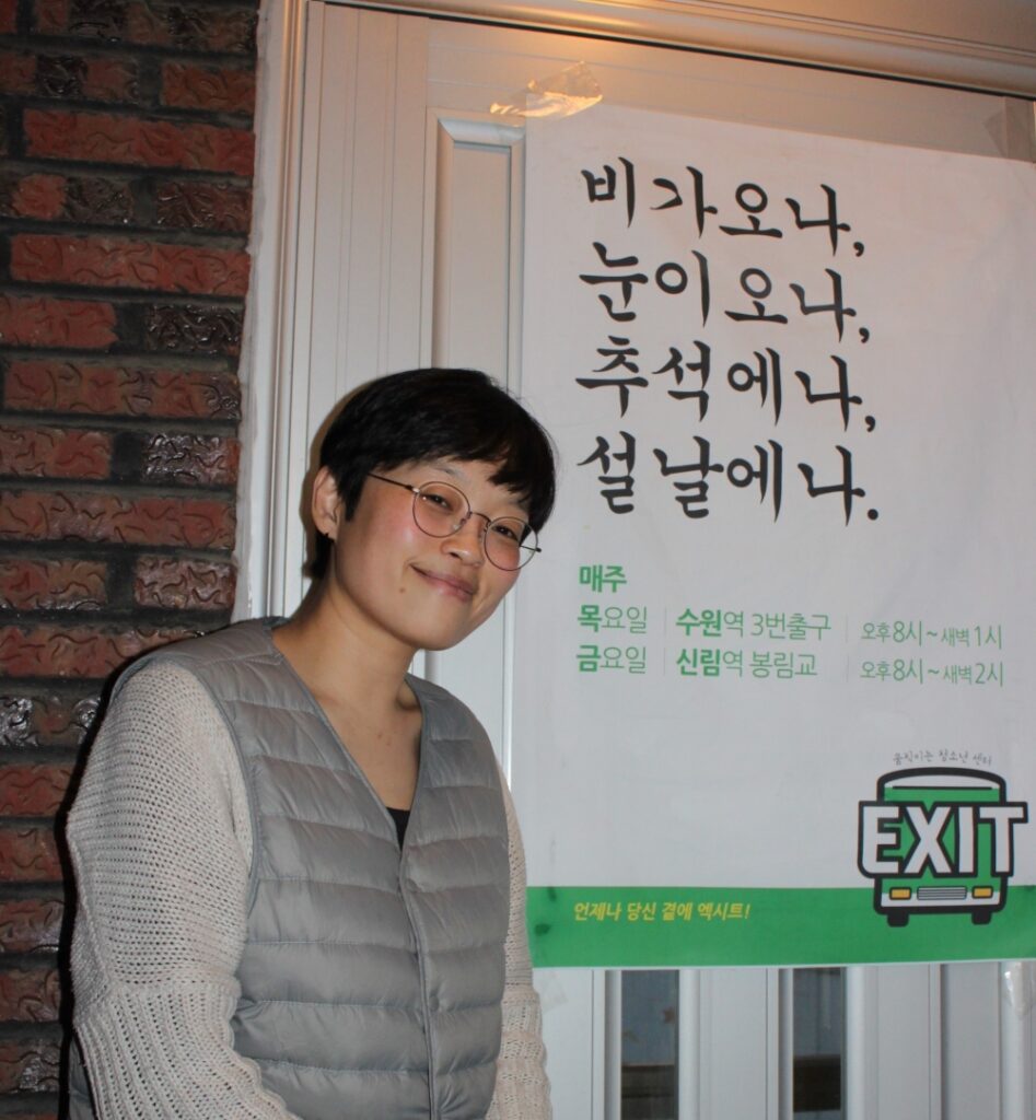 엑시트에 찾아오는 거리청소년들 중 다수는 가정폭력과 학대 수준의 방임을 겪고 있는 탈가정 및 탈학교 청소년들이다. 그들은 그곳에서 떠들고 놀기도 하며, ‘활동가’라고 불리는 엑시트의 자원봉사자들에게 스스럼없이 다가가 근황을 이야기하고 고민을 털어놓는다. 왁자지껄한 분위기의 엑시트에서 거리청소년들과 함께 하고 있는 이윤경 활동가를 만났다.