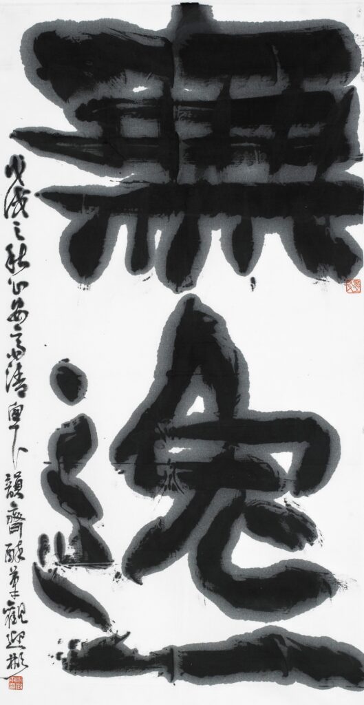 일반적인 심미적 기준을 과감하게 벗어나면서 새로운 시도를 하는 경우도 있다. 이승우 작가의 ‘무일(無逸)’은 붓글씨를 쓸 때 나타나는 자연스러움을 적극적으로 활용한 작품이다. 이 작품에서 눈에 띄는 것이 두 가지 있다. 하나는 번짐이다. 천 위에 먹으로 글씨를 쓴 이 작품에서 붓이 움직인 자국의 주변으로 먹물이 흐리게 퍼져나간 모습이 인상적이다. 다른 하나는 ‘일(逸)’ 자의 맨 아래 선에서 관찰되는 끊어진 듯한 부분이다. 획을 긋던 중에 붓이 천을 밀어 접힌 부분이 생겼고, 접힌 부분을 붓이 건너뛰며 도중에 획의 끊어졌다. 예상치 못한 상황이었지만 작품은 완성됐고, 작가는 작품에 서명해서 자신의 이름을 건 전시에 출품했다. 손과 붓으로 글씨를 쓸 때 발생하는 우연과 변칙을 그대로 살려내 활용한 사례다.