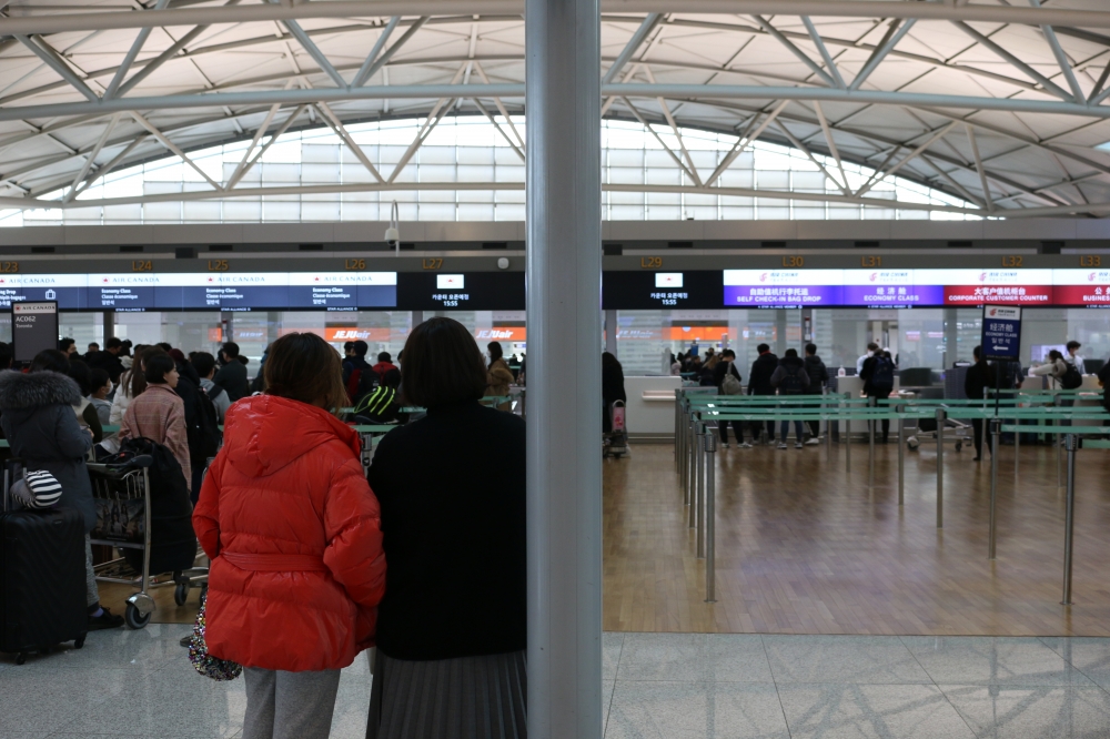 해외에서 발생한 코로나19에 따른 변화는 입·출국을 담당하는 공항이나 항구에서 가장 먼저 일어났다. 인천공항도 마찬가지였다. 인천공항은 전염병 예방을 위해 수유실을 비롯한 편의시설 운영을 중단했다. 해외에서 입국하는 사람들이 가장 많은 곳인 만큼 선별 진료소가 운영되기도 했다. 코로나19를 대비한 변화는 공항 차원에서뿐 아니라 이용객 사이에서도 나타났다. 사람들은 중국으로의 출국을 줄였다. 이는 비슷한 시간대에 다른 나라로 출국하는 경우와 비교해 눈에 띄는 정도였다. 입국장에서 마스크를 쓰지 않은 사람을 찾기는 어려웠다. 한편, 본국으로 돌아가는 외국인들은 마스크를 대량으로 챙겨 코로나19를 대비하는 모습이었다.