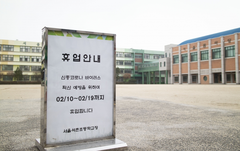 초·중등학교부터 대학교까지, 교육기관들도 코로나19의 여파에서 자유롭지 못했다. 코로나19의 지역사회 전파에 대한 불안감이 고조되면서 교육기관들이 휴업에 나선 것이다. 3월 2일, 교육부는 유치원부터 고등학교 모두 예년에 비해 3주 늦춰진 23일에 개학한다고 발표했다. 정부가 전국 단위로 휴교령을 내린 것은 처음 있는 일이다. 정부는 초등학교 2학년 이하의 자녀를 둔 학부모의 육아 부담을 줄이기 위해 최대 10일의 자녀돌봄휴가와 50만 원까지의 자녀돌봄비용을 지원할 예정이다.