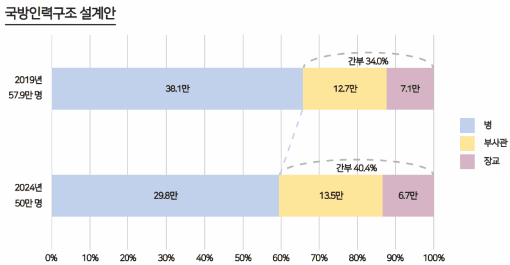 과기계의 주장을 정리하면 전문연 존속을 통해 필요한 최소 병력의 수를 줄임으로써 병역자원 부족에 대비할 수 있다는 말이다. 한편 병력 감소 문제의 해결책으로 모병제를 도입하자는 주장 또한 심심찮게 제기되고 있다. 출생률 하락으로 지속적인 인구감소가 예상되면서 모병제는 병역자원 고갈의 대안으로 떠오른 지 오래다. 김영삼 정부부터 군 규모의 감축이 논의되기 시작했고, 정치권에서도 여야를 막론하고 모병제 전환을 검토해야 한다는 주장이 이어졌다. 최근엔 더불어민주당 산하 ‘민주연구원’에서 통해 모병제로의 단계적 전환을 제안하는 보고서가 발표돼 모병제 논의가 다시금 불거졌다. 민주연구원 이용민 연구위원은 보고서에서 ‘50만 군(사병 30만) 및 병 복무기간 18개월을 유지해도 병역자원 확보 자체가 불가하다’며 병력이 아닌 질 중심으로 군을 개편해야 한다고 주장했다.