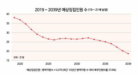 과기계의 주장을 정리하면 전문연 존속을 통해 필요한 최소 병력의 수를 줄임으로써 병역자원 부족에 대비할 수 있다는 말이다. 한편 병력 감소 문제의 해결책으로 모병제를 도입하자는 주장 또한 심심찮게 제기되고 있다. 출생률 하락으로 지속적인 인구감소가 예상되면서 모병제는 병역자원 고갈의 대안으로 떠오른 지 오래다. 김영삼 정부부터 군 규모의 감축이 논의되기 시작했고, 정치권에서도 여야를 막론하고 모병제 전환을 검토해야 한다는 주장이 이어졌다. 최근엔 더불어민주당 산하 ‘민주연구원’에서 통해 모병제로의 단계적 전환을 제안하는 보고서가 발표돼 모병제 논의가 다시금 불거졌다. 민주연구원 이용민 연구위원은 보고서에서 ‘50만 군(사병 30만) 및 병 복무기간 18개월을 유지해도 병역자원 확보 자체가 불가하다’며 병력이 아닌 질 중심으로 군을 개편해야 한다고 주장했다.