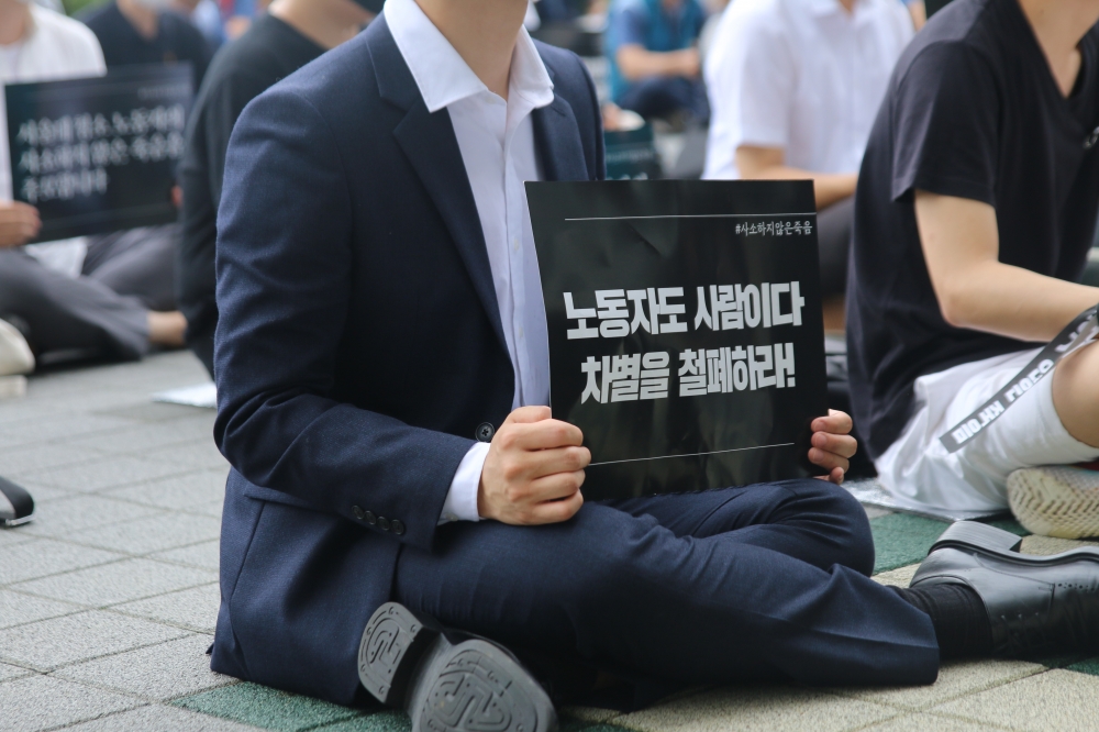 일반노조 서울대 기계·전기분회 임민형 분회장은 추모의 의미를 되새기며 고인을 고통스러운 죽음의 길목에 방치했던 대학본부를 비판했다. 임 분회장은 “추모란 ‘고인과 함께했던 아름답고 행복한 추억을 그리워하고 잊지 않음’”이지만 폭염 속에서 고인을 보내야 했던 기억은 결코 행복하다고 할 수 없다고 말했다. 이어 그는 “죽음에 이르게 한 환경을 방치하고도 ‘고인이 지병으로 사망했다’는 언급을 하는 학교 측의 비인간적인 처사가 참으로 개탄스럽다”고 목소리 높였다.