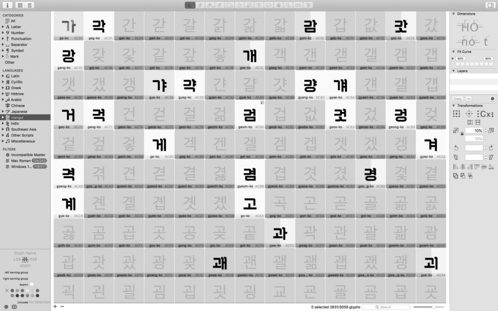 ▲숲 디자이너의 길벗체 작업 화면 ⓒ디자이너 숲