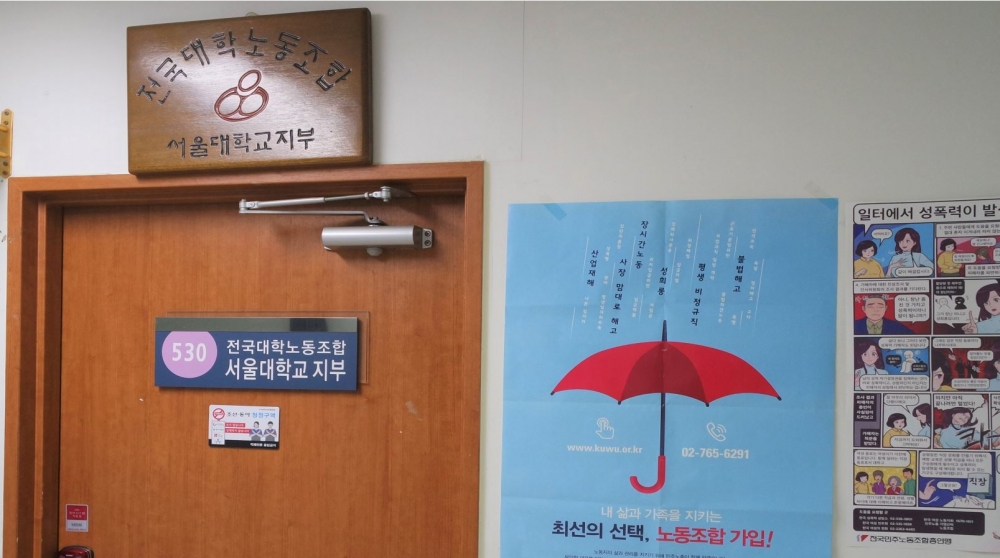 서울대는 작년 9월, 직원 중 법인직만 해당되는 교직원 행동강령에 직장 내 괴롭힘을 금지하는 조항을 신설했지만 무기직과 계약직에게 적용되는 취업규칙은 2007년 신설 이후 한 번도 개정하지 않았다. 송호현 지부장은 “취업규칙에 직장 내 괴롭힘 관련 조항이 없다면 소속 기관장에게 알렸을 때 기관에서는 아무런 조치도 취하지 못해 조용히 덮거나 계약 해지까지 무시하기도 한다”고 덧붙였다. 취업규칙보다 우선 적용되는 근로조건 규정으로 단체협약이 있다. 서울대엔 법인직원, 자체직원 등 총 6개의 단체협약을 위한 교섭단위가 있으며 지방노동위원회의 판단에 따라 함께 교섭하기엔 직종 간 근로조건의 차이가 크다고 판단되면 구별해 교섭한다. 자체직원 교섭대표 노동조합인 서울대노조의 경우, 조합 규약에 따라 무기직 이상만 가입 가능해 계약직은 작년에 체결된 단체협약의 효력을 받을 수 없다. 송호현 지부장은 “조합원이 직장에서 부당함을 느꼈다면 조합에 청원을 넣어 대학이 적절한 조치를 취하도록 압박을 넣어야 하는데, 계약직은 단체협약에서 제외돼 이런 절차를 거칠 수 없다”고 지적했다.