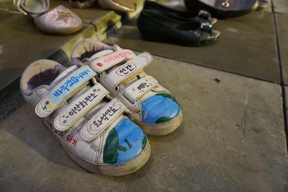 이 날, 시민들이 보낸 1,000켤레의 신발이 만리동광장을 가득 채웠다. 그 중 한 아이가 보낸 것으로 보이는 작은 사이즈의 신발에는 “바꾸시겠습니까? 사라지겠습니까?”라는 문구가 쓰여 있었다. 지금 당장 닥친 기후위기의 현실을 바꾸지 않으면 인간은 사라진다는 뜻을 담은 이 문구는 집회 참가자뿐만 아니라 우리 모두에게 기후위기에 대해 경고하는 듯했다. 어느 때가 되면 대답하지 못할 수도 있는 이 질문에 지금이라도 대답해야 하지 않을까. 누군가 우리에게 다시 묻는다. “바꾸시겠습니까? 사라지겠습니까?”