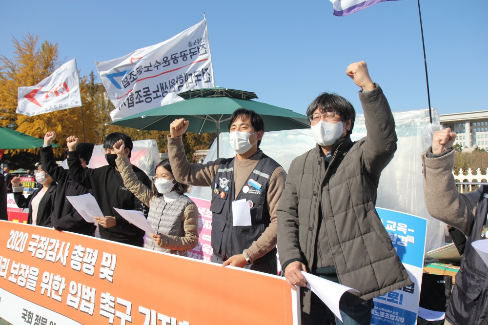 대학원생노조 양승서 수석부지부장은 “대학이 구성원들을 착취하고 차별하며 교육기관 본연의 책무를 방기하는 상황을 정부가 외면해선 안된다”며 연구와 교육의 공공성 회복을 위해 고등교육재정교부금법 제정이 절실하다고 말했다. 양 수석지부장은 고등교육재정교부금법 제정을 통해 “교육의 질은 물론이고 학생의 권리 보호와 처우개선, 그리고 대학 재정난 등 여러 어려움을 동시에 해결”할 수 있다고 덧붙였다.