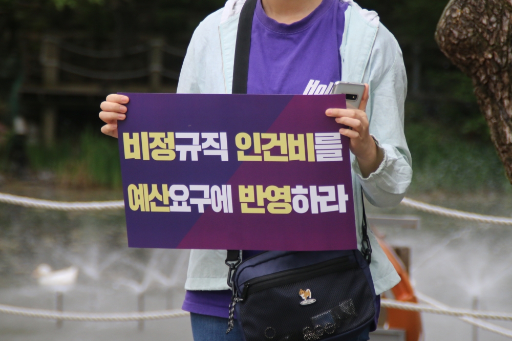 서울대 총장은 매년 4월 30일까지 다음 연도의 출연금 예산요구서를 교육부 장관에게 제출해야 한다. 그러나 지금까지 예산요구서에는 법인직원을 제외한 비정규직 노동자의 임금 및 복지 예산이 반영되지 않았다. 대학노조 송호현 지부장은 “그동안 서울대 본부는 무기계약직 노동자들과의 임금협상에서 줄곧 예산이 부족하다는 핑계를 대며 처우 개선을 미뤄왔다”며 교육부 예산요구 단계에서부터 비정규직 인건비를 고려해야 한다고 비판했다.