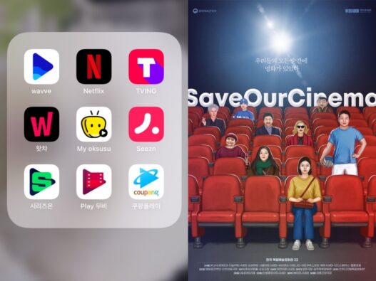 (왼쪽) 다양한 OTT 서비스, (오른쪽) #SaveOurCinema’ 캠페인 포스터 ⓒ전국예술영화관협회