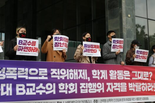공동행동은 본부가 교수에 의한 성폭력·인권침해 사안을 예방하기 위해 적극적으로 나서야 한다고 목소리를 높였다. 변현준 씨(사회 20)는 “교수 권력을 지탱하는 것은 폐쇄적인 학계와 비민주적인 학교”라며 “교수의 권력이 부당한 가해를 가능케 하는 연결고리를 끊어야 한다”고 말했다. 공동행동은 ▲B교수가 참여하는 학회에 B교수의 집행위원·고문 자격을 박탈할 것과 ▲교원징계위원회에 B교수를 파면할 것을 요구했다. 공동행동은 이후 학회에 항의 서한을 제출할 예정이다.