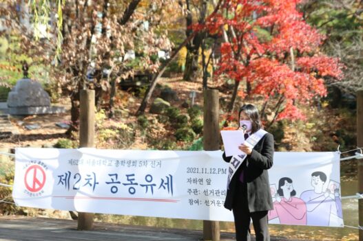 12일 정오, 자하연 앞에서 제62대 총학생회 선거에 출마한 ‘자정’ 선본의 2차 공동유세가 진행됐다.