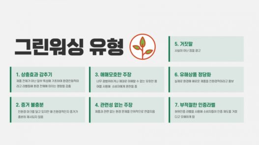 개발 과정의 시행착오에도 불구하고 친환경을 실천하려는 패션업계의 노력이 있지만, 친환경 이미지를 악용하는 그린워싱 기업도 있다. 캐나다의 친환경컨설팅기업 테라초이스는 그린워싱의 7가지 유형으로 ①상충효과 감추기, ②증거 불충분, ③애매모호한 주장, ④관련성 없는 주장, ⑤거짓말, ⑥유해상품 정당화, ⑦부적절한 인증라벨을 제시했다. 이 기준은 현재도 각국의 그린워싱 단속 규정과 민간 환경단체에서 사용되고 있다.
