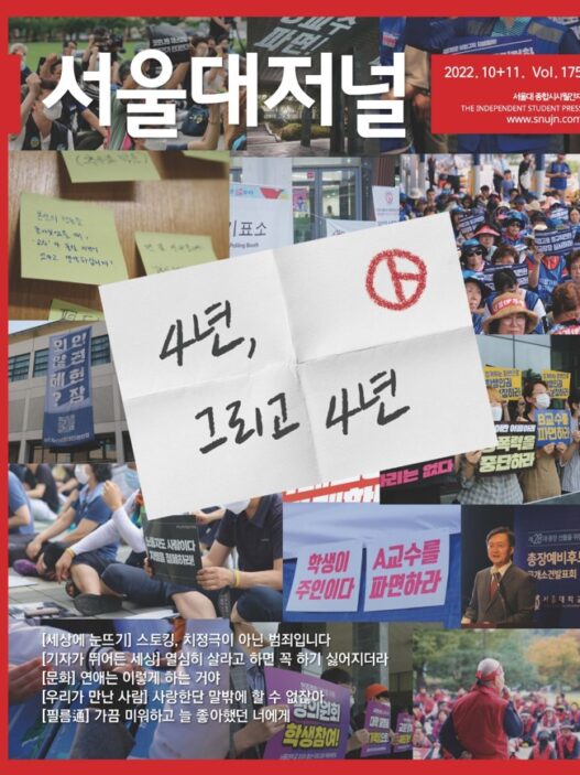세상에 눈뜨기 임금차별, 인종차별커버스토리 흔들리는 경계 위에서북새통 어디에도 없는 자신의 언어로 쓴 시학원초점 좋은 교육을 위해 사범대를 말하다그럼에도 무대는 계속된다서울대 인권 대응 시스템의 정착을 위해서는캠퍼스라이프 환경에 진심인 사람들의 모임, 씨알TV부사진으로 보다 책장 밖의 책특집청년 그리고 정치사회미혼부 자녀의 태어날 권리우리가 만난 사람 노들장애인야학 김명학·천성호 교장을 만나다문화손끝으로 더 넓은 세상을 읽어내기 위해필름通 공장을 이탈한 부품, 성냥공장 소녀오감을 유지하자 기억의 불은 켜지고 우리는 계속 움직인다.오피니언기자수첩 나의 글이 남기는 필연적 여백을 메꿔주는 존재들에게데스크칼럼 말이 그려내는 세계