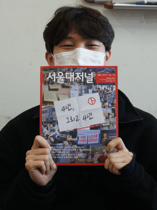 Q1. 제일 최근에 들은 노래는 무엇인가요?Q2. 중간고사로 바쁜 와중에도 나를 설레게 하는 것은 무엇인가요?Q3. 최근 총장선거가 있었는데, 새 총장에게 바라는 점이 있으신가요?1. 90년대 영국 팝송을 듣고 있어요. U2라는 밴드를 발견하고 영국 노래에 관심이 생겼는데, 특유의 우울한 분위기가 마음에 듭니다.2. 맛있는 거 먹으러 다니는 걸 좋아하는데, 시험 기간에는 따로 어디 가기 어려우니까 점심, 저녁에 학교에서 누구랑 무엇을 먹을지 정하는 게 나름의 소소한 즐거움입니다.3. 노동 관련 동아리에 소속돼있어서 평소 학내 노동, 장애, 인권 문제에 관심이 많은데요. 자정의 총장예비후보자 초청 간담회 때도, 참관한 학생들이 후보자들에게 관련 질문을 했던 것으로 알고 있어요. 그때 제기됐던 이동권, 노동환경 개선 문제를 새 총장님이 잘 챙겨봐주셨으면 좋겠습니다.- 하진성 (철학 19)1. 마우리치오 폴리니(Maurizio Pollini)의 쇼팽 피아노 콘체르토 1번 1악장이요. 쇼팽이 이 노래를 작곡하고 연주자에게 보낸 편지에서 ‘수많은 추억을 불러일으키는 장소를 슬며시 바라보듯 연주해 달라’고 부탁했다 하더라고요. 저도 들으면서 옛 추억을 떠올렸답니다.2. 얼마 전 맛있는 것을 먹으러 갈 때 설렘을 느꼈어요. 오리 주물럭이랑 막걸리를 먹었습니다.3. 솔직히 아무 기대도 하지 않고 있고요. 큰 사고 없이 무난하게 임기가 흘러갔으면 좋겠습니다.- 강동완 (불어불문 18)1. 인디 밴드 LUCY의 ‘KnowHow’(2022)를 들었습니다. 원래 신나는 밴드음악을 좋아해서요.2. 시험 끝나고 놀 일만 기다려지는 것 같아요. 친구들이랑 술도 마시고 밴드 동아리 합주도 다시 시작하고 싶네요.3. 사실 총장선거에 큰 관심이 없어서 잘 모르겠지만, 지금보다 학교가 더 안 좋아지지만 않으면 좋겠습니다.- 양현서 (자유전공 21)1. Alvvays의 ‘After The Earthquake’(2022)를 들었습니다. 제가 좋아하는 밴드인데, 5년 만에 새 앨범이 나와서 오늘 처음으로 신곡을 들어봤어요. 지금 들은 이 곡이 너무 좋아서 다른 수록곡도 아껴 들을 계획입니다.2. 축구요. 월드컵이 임박해서 3, 4일에 한 번꼴로 해외 축구 경기들이 열리는데, 바빠서 실시간으로는 못 보지만 아침마다 10분짜리 하이라이트 영상 보는 걸 삶의 낙으로 삼고 있습니다.3. 요즘 주말에 학교 도서관에서 공부하는데, 기숙사 식당을 제외하고는 주말에 운영하는 학내 식당이 거의 없더라고요. 코로나 시국에 식당 운영을 축소한 것으로 알고 있는데, 대면 수업을 재개한 지 일 년이 넘었는데도 운영이 정상화되지 않은 것 같아요. 학생들의 일상생활이나 복지에 신경 써 주셨으면 좋겠습니다.- 박채현 (컴퓨터공학 22)