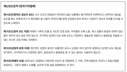 한국기자협회 재난보도준칙 일부 Ⓒ강다겸