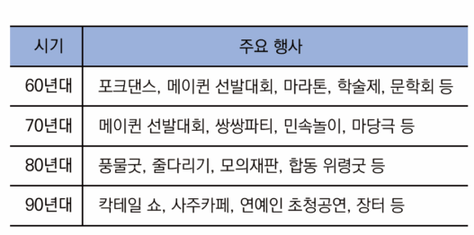 대학 축제는 시대에 따라 변화했지만, 학생이 주체로서 대학 공동체 내 의견을 공유하는 ‘광장’의 역할만은 지속해왔다. 대학 축제의 효능과 방향성을 연구한 신라대 양승훈 교수(국제관광경영학과)는 “축제는 학생들이 대면으로 모여 ‘대학 문화’를 공유할 수 있는 장으로서 의의가 있다”며 대학 축제의 본질을 설명했다. 대학 축제는 언제나 한 세대의 문화를 형성하는 기능을 해왔다.