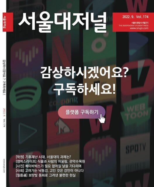 TV부사진으로 보다 베이비박스가 필요 없어질 날을 기다리며학원학내 노동 동향학생회 동향캠퍼스라이프식물과 사람의 어울림, 관악수목원 기후재난 시대, 서울대의 과제는?