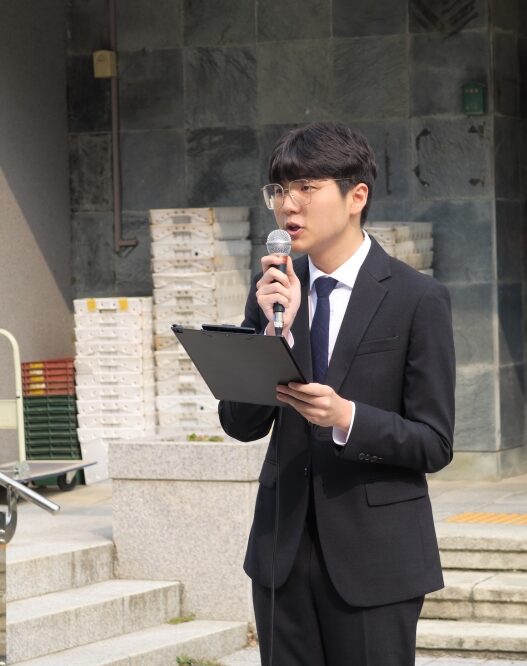 ▲16동 앞 계단에서 진행된 기자회견 현장