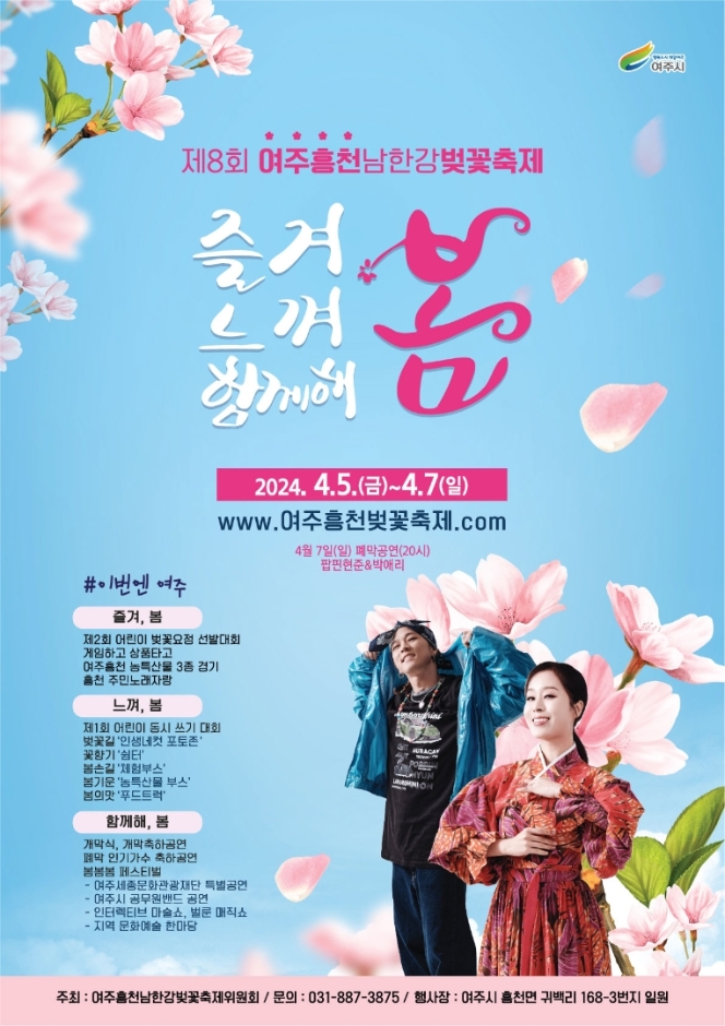 올해 초 많은 지자체 및 벚꽃축제위원회는 예년과는 달리 다시 찾아온 꽃샘추위로 미뤄진 벚꽃 개화 시기에 맞춰 벚꽃축제 시기를 연기해야만 했다. 여주흥천남한강벚꽃축제는 3월 29일에서 31일까지로 예정돼 있었던 기존 일정 기준 축제 나흘 전인 3월 25일, 축제 시기를 4월 5일에서 7일까지로 연기한다고 밝혔다. 벚꽃축제 초청 공연진이 주로 지역 내 문화관광재단과 공무원밴드 등이었던 여주흥천남한강벚꽃축제는 공연진과의 일정 조정이 가능했고, 개화 시기에 맞춰 차질 없이 축제를 진행할 수 있었다. 축제 방문객들은 미뤄진 축제 일정에 맞춰 나들이 일정을 변경해야 했지만, 그래도 만개한 벚꽃을 볼 수 있어서 좋았다는 감상을 나눴다.