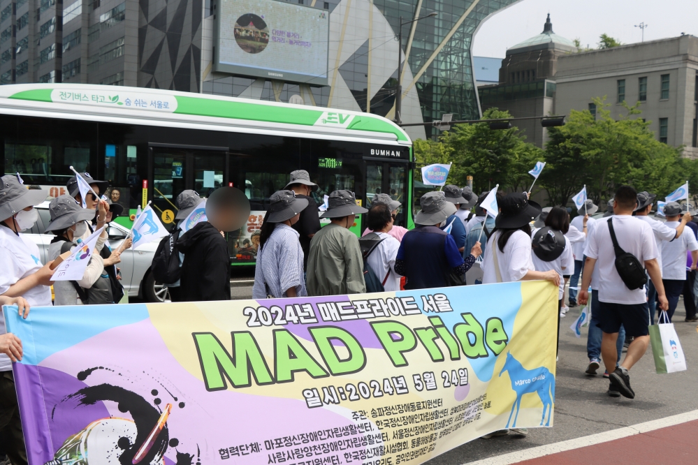 세계 조현병의 날을 기념해 지난 24일 종각역 일대에서 2024 매드 프라이드 서울 ‘다들 미치는 세상 아닌가요?’가 열렸다. 1993년 캐나다에서 시작돼 세계 각지로 확산된 매드 프라이드는 정신질환 및 정신장애 당사자들이 주도해 정신질환에 대한 차별과 낙인에 저항하며 자신들의 매드 정체성을 긍정하려는 시도다. 송파정신장애동료지원센터의 주관으로 15개 기관이 협력해 기획된 이번 매드 프라이드는 지난 2019년 이후 4년 만에 광장에서 부활했다. 행사는 크게 침대 밀기(BED PUSH), 거리 행진, 3분 발언 등으로 구성됐다.