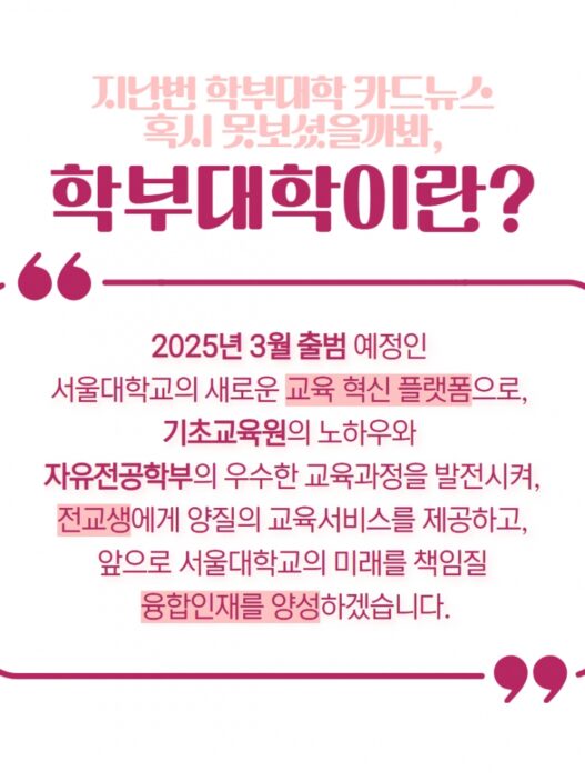 그에 맞춰 계획하고 있는 몇 가지 사업이 있다. 첫 번째는 원우들의 목소리를 귀담아듣기 위해 소통 채널을 확장하는 것이다. 기존에는 공식 메일을 통해서만 소통했으나, 앞으로는 공식 메일뿐만 아니라 카카오톡 채널, 인스타그램, 스누라이프 등을 통해서도 원우들의 의견을 귀담아들을 것이다.