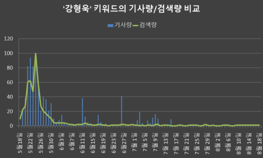 강형욱 훈련사 측의 해명이 발표된 이후, 언론은 이를 받아쓰며 보도를 이어갔다. 하지만 강 훈련사 측과 전 직원들 사이에 있었던 갈등이 어느 정도까지 사실이고, 그 사실이 어떤 공방을 통해 나타나고 있는지를 다룬 후속 보도는 찾아보기 어려웠다. 이 과정에서 강 훈련사에게 뜨겁게 빗발치던 관심은 급속도로 냉각됐다. 실제로 논란이 보도된 5월 말과 6월 초 사이 ‘강형욱’을 키워드로 한 기사량과 검색량은 폭발적이었지만, 시간이 흐를수록 현저히 줄어들었다. 진실을 확인하려는 움직임은 미비했고, 이 과정에서 ‘나락’에 가든 ‘극락’에 있든 당사자의 목소리와 상황은 여전히 소외됐다.