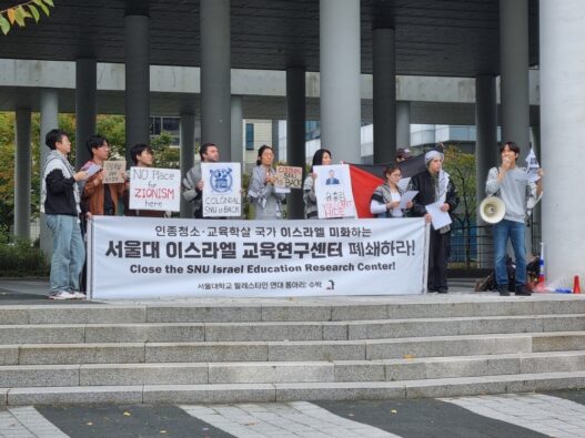 “인종학살의 공범이 될 수 없다, 이스라엘교육연구센터 폐쇄하라!”