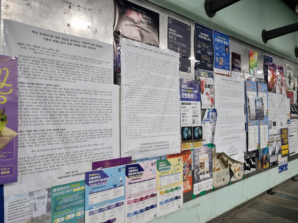 서울대학교에는 말소리 하나 없지만 어디보다도 시끄러운 공간들이 있다. 중앙도서관 터널 통로(중도터널)의 벽, 학생회관 앞 게시판, 학내 곳곳 위치한 게시판이다. 이곳에 붙은 수십 건의 인쇄물이 저마다 하고 싶은 말을 쏟아낸다. 동아리 홍보부터 학내 실험 참가자 모집, 행사와 강좌 안내까지 형형색색의 인쇄물들은 행인들의 눈길을 빼앗는다. 그 가운데, 단연 눈에 띄는 글이 하나 있다. A1 크기의 하얀 종이에 손 글씨로, 혹은 컴퓨터 활자로 빼곡하게 채워진 놀랍도록 담백한 글. 흔히 벽보 혹은 대자보라 불리는 그 글은 다른 인쇄물과 사뭇 다른 분위기의 이야기를 담는다. 텔레그램 속에 파묻혀 있던 딥페이크 범죄, 교수에 의해 자행되는 성폭력, 팔레스타인에서 벌어지고 있는 학살과 같은 무거운 상황에 대한 고발이나 특정 정책과 사건에 대한 작자의 의견 등이 지면 위에 떠오른다.