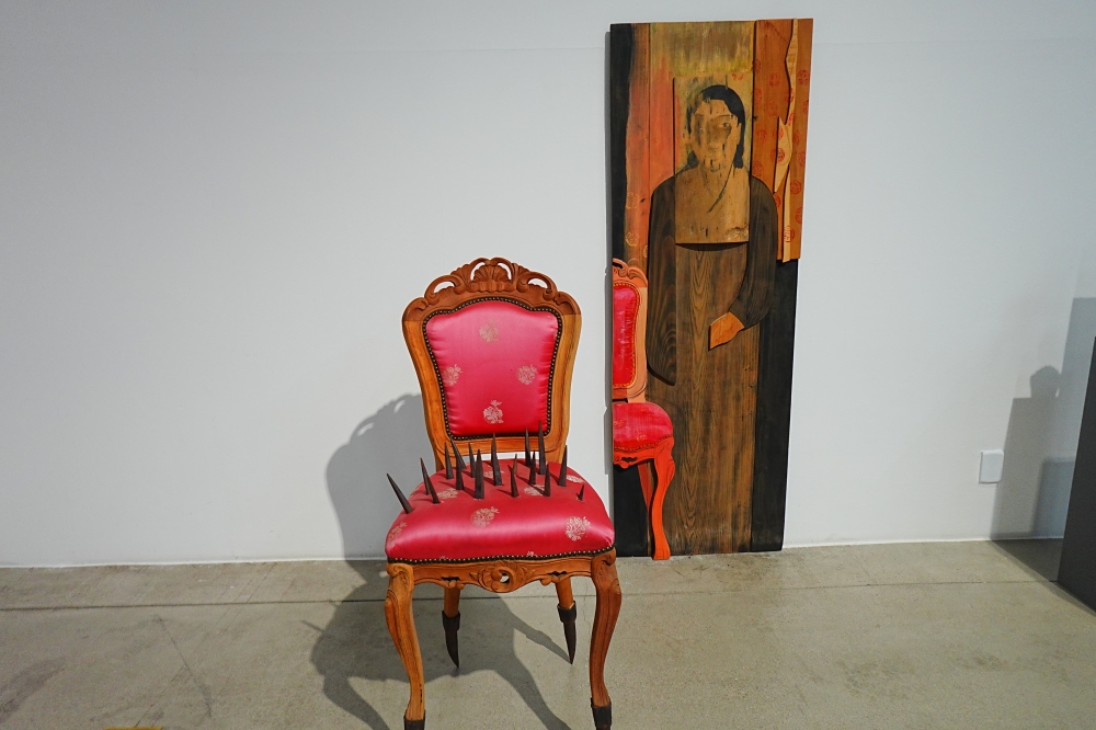 전시에는 시각적 예술뿐 아니라, 혼합 매체를 이용한 작품도 적지 않게 배치돼 있다. 이 작품은 한국 페미니즘 미술의 선구자인 윤석남의 「어머니의 이야기」이다. 윤석남은 기록되지 않은 여성의 역사, 평가 절하된 모성, 생태에 이르기까지 페미니즘을 주제로 다양한 회화, 설치 작업을 진행해 왔다. 「어머니의 이야기」는 한국의 보편적인 어머니의 사연을 담은 설치 작품이다. 당시 유행하던 식탁 의자의 윗면과 네 다리에 쇠가시를 박은 설치물이 자리하고, 그 오른편 나무 조각을 이어 붙인 화판에 한복을 입은 전통적 여성상의 인물이 서 있다. 이 작품은 흔히 여성의 공간으로 간주되는 부엌에서조차 온전한 자리를 보전하지 못한 채 불편함을 느낄 수밖에 없었던 현실과 그럼에도 자신의 일을 해나가는 여성의 강인함을 형상화한다.