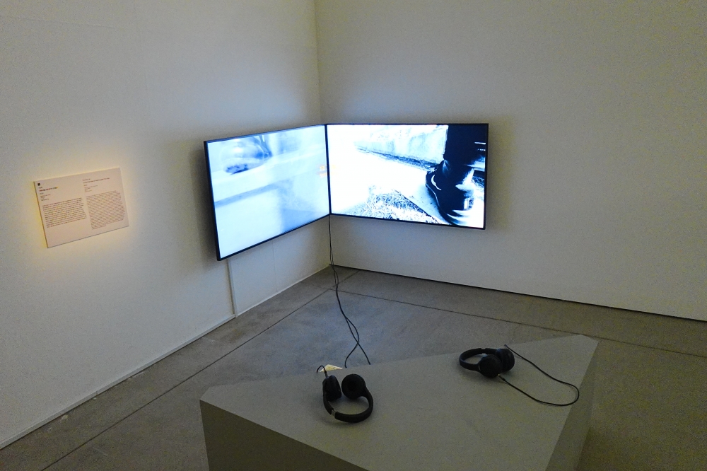 전시관 내부의 벽면을 따라가다 보면, 발밑의 시각에서 촬영한 영상을 시청할 수 있다. 「이족보행을 위한 몇 가지 전제들」은 영상 매체를 통해 사회 이면에 내재한 복잡한 메커니즘을 탐구한 이은희 작가의 작품이다. 작가는 주로 기술로 이어진 신체와 노동의 관계를 파고들어 사회가 주입하는 신체의 정상성에 의문을 제기한다. 이 작품은 높고 가파른 계단이 많은 북서울미술관의 안팎을 순회하는 걸음을 담은 2채널 영상 작업이다. 미술관 안팎을 순회하는 걸음걸이가 만드는 리듬에 맞춰 장애등급 판정 기준, 보행 및 일상생활동작의 수행능력을 평가하는 지수인 수정바델지수, 인지기능장애 평가 도구의 문항들이 내레이션으로 낭독된다. 장애와 비장애가 철저한 기준에 따라 분류되는 듯하지만, 낭독되는 문항들은 실상 경계가 모호하다. 그렇기에 우리가 정상으로 인식하는 신체의 조건에 의구심이 덧입혀진다. 작가는 이를 통해 누군가에게는 지극히 일상적일 수 있는 ‘걷는’ 행위에 숨어있는 정상성의 의미를 묻는다.