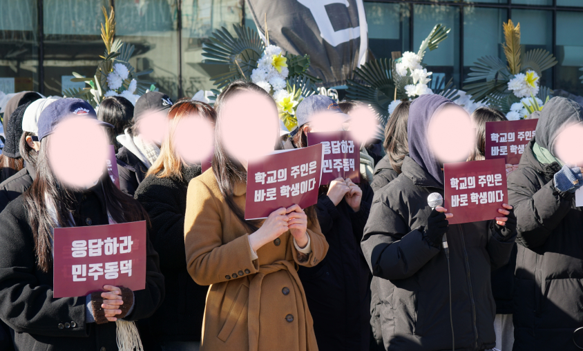 민주 동덕에 봄은 오는가. 학교 측은 알아야 한다. 학생은 법령을 잘 알지 못한다는 점을 이용하여 법률을 인용해 막아설 수 있는 존재가 아니다. 총장과 이사진은 지난 11월부터 이어지는 이런 지속적인 비민주적인 행보를 멈춰라. 우리들은 앞으로도 계속해서 동덕여자대학교의 민주주의를 위하여 나아갈 것이다.